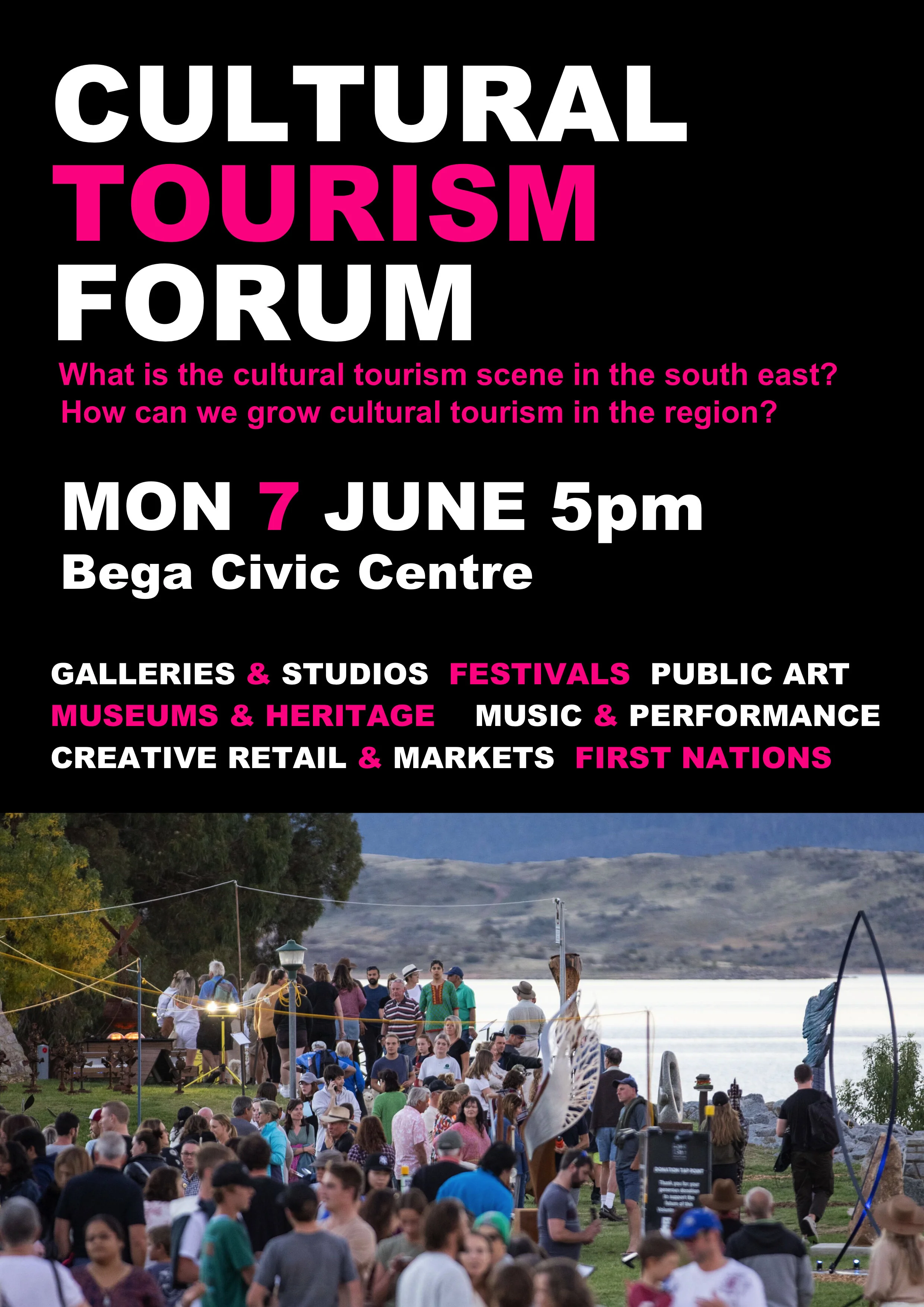 Join us on Monday 7 June at the Bega Valley Commemorative Civic Centre for a networking event and cultural tourism forum.